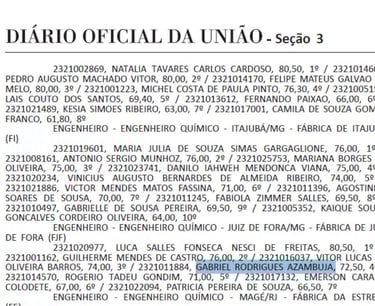 Me chamo Gabriel Rodrigues Azambuja, sou Engenheiro Químico formado pela USP. Logo após a graduação, prestei o concurso da IMBEL e fui aprovado, o que reforçou ainda mais minha confiança na jornada dos concursos públicos. Desde então, venho estudando com dedicação há um ano.